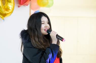 在年会现场,学院志愿者代表、院十佳歌手季军阿丽米热为在场志愿者们演唱歌曲《感恩的心》,用悠扬的歌声传递出了她对志愿服务活动的深切热爱,也展现出了浙财志愿者的青春风采。