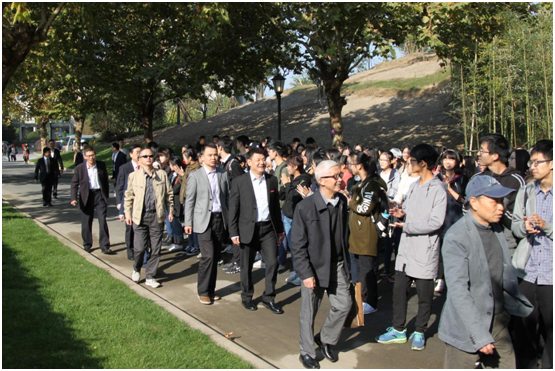 2017年11月4日上午9点整,修葺一新的校友路严阵以待。今天,这里将迎来返校的校友们。伴随着热烈的掌声,校领导、老教师以及优秀校友代表依次入场,在场的所有人都怀着无比真切与热忱的心情,期待着校友路揭幕活动的开启。校友路模仿了文华老校区的风格,财大05年搬迁到了下沙新校区,希望通过校友路的建设,勾起校友们对老校区的记忆。