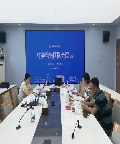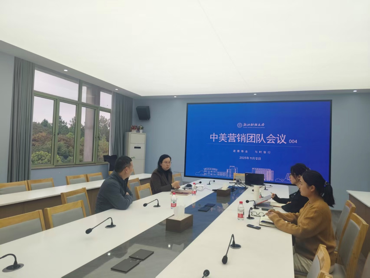教学副院长张雷、以及中美营销项目办公室陈颖、杨静舒、郑枢帆三位老师。会议围绕项目运行机制完善、资料体系建设、学生支持服务与成果导向发展进行了阶段性总结,并部署下一阶段重点任务。