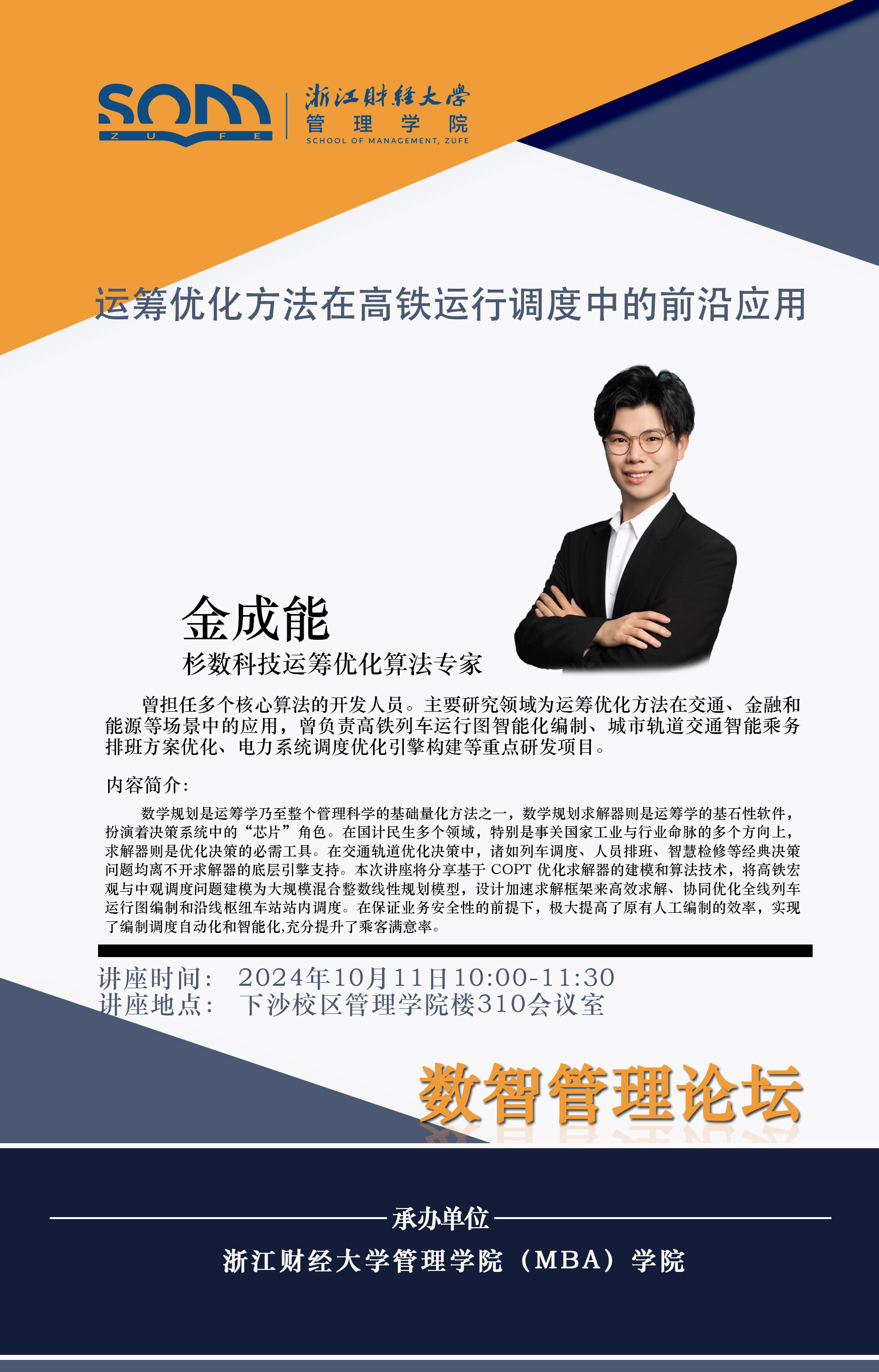 【讲座预告】金成能:运筹优化方法在高铁运行调度中的前沿应用