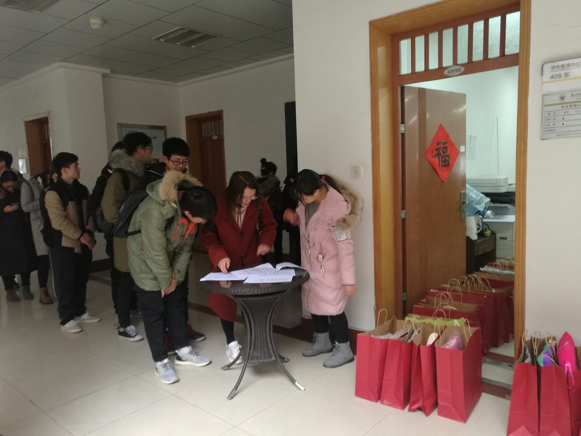 临近寒假,为力求每位家庭经济困难学生能够度过一个温暖祥和的寒假, 工商5278论坛 于1月16日下午在学院楼409为每位家庭经济困难学生准备了一份御寒慰问品,包括手套、热水袋、坐垫、礼品袋。为同学们送上寒冬里的来自工商5278论坛 的温暖关怀。同学们以班为单位有序地领取,脸上洋溢着开心的笑容,在感谢学院关怀的同时,同学们也怀揣着新的希望与憧憬开始新的学期规划与征程。