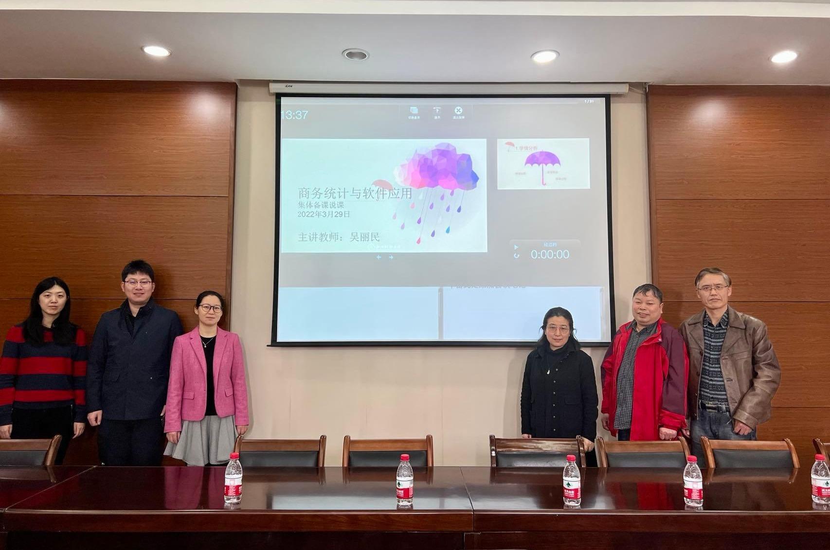 3月29日下午学院218,工商管理系《商务统计与软件应用》课程组开展首次集体备课活动。本次活动旨在促进任课老师之间的交流,分析教学现状,分享教学经验,讨论课程设计,改进备课过程的不足。集体备课活动由系主任吴丽民主持,彭金荣、倪文斌、赵昶、罗兴武、戚筱雯、赵雨菡,院督导林与川老师,教学办赵红老师参加了本次活动。