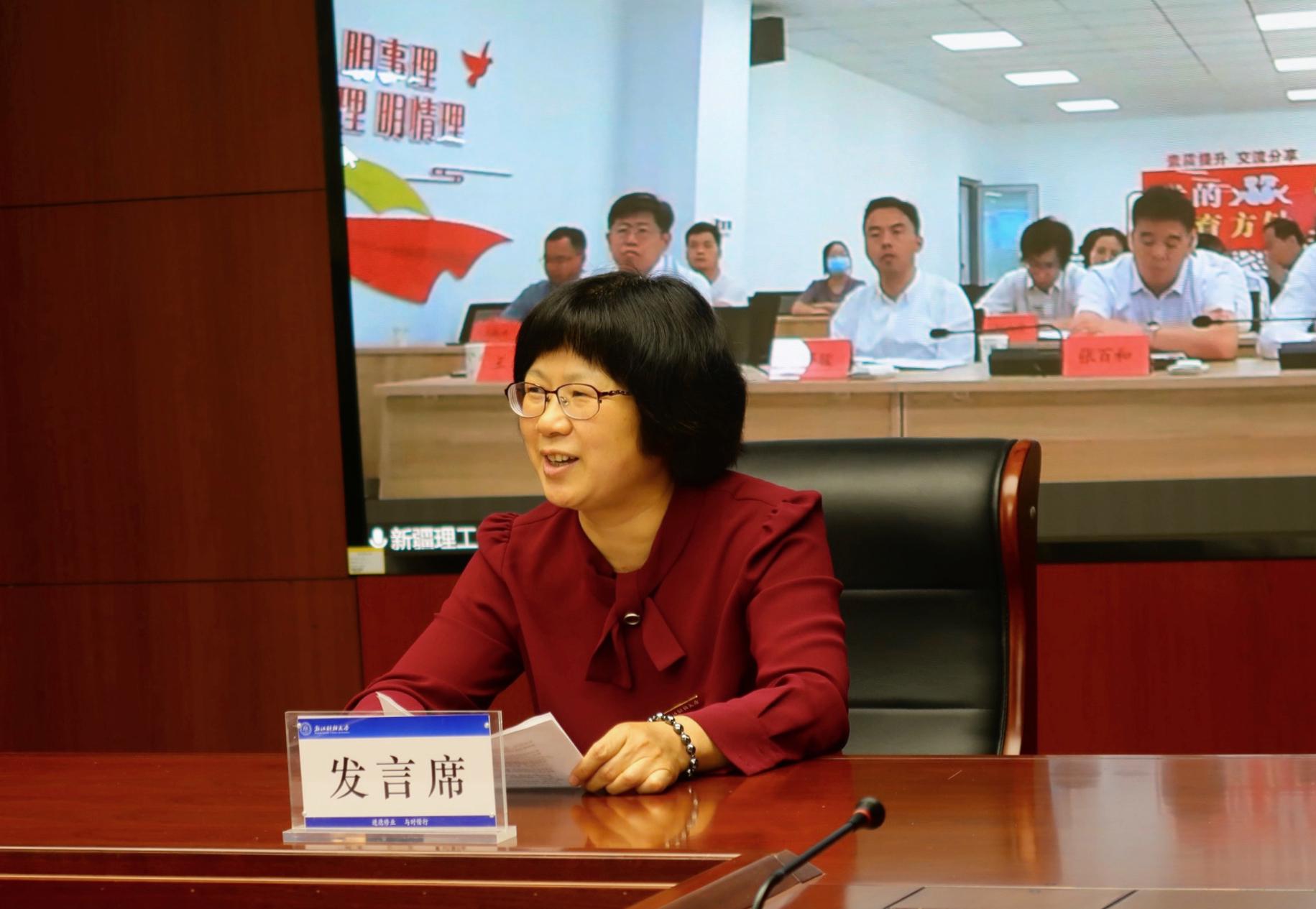 新疆理工学院党委书记张百和做总结发言,他表示教育援疆对于深化浙阿两地合作交流有着重要的意义,对未来两校合作他提出四点希望:一是创新教研形态;二是加强教学研究;三是共建优质资源;四是共同开展教师培训。