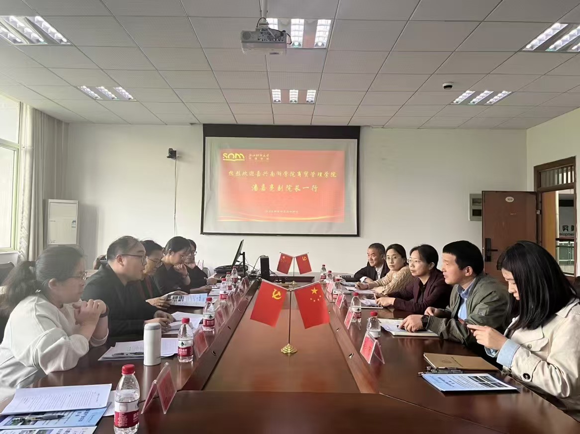 副院长、人力资源管理专业负责人潘嘉亮一行6人来院调研交流。人力资源管理专业负责人吴道友教授、系主任张维维及多位专业老师热情接待了来访客人。