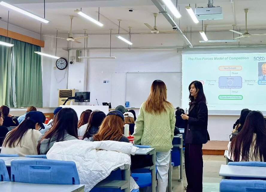 开展省级一流课程《战略管理(双语)》教学观摩活动。此次活动是2021年度省级一流课程建设中期检查的重要环节,由课程负责人俞萍萍副教授主讲,学院督导组、各系部教师等8人参与现场观摩。