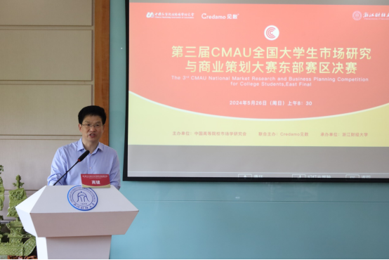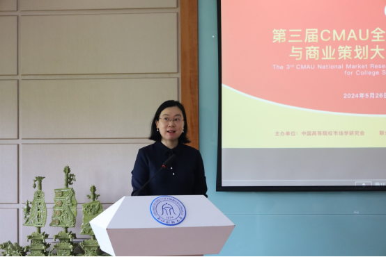 表示感谢。王永贵教授指出营销学科自诞生之日起就与企业实践活动密不可分,市场调研的本质就是为了帮助企业发现真实的市场问题,解决真实的市场问题。在大数据和人工智能等数智技术日益成为现代商业常态的大背景下,企业的问题也呈现出多元化、复杂化和不确定性等诸多新的特征,传统的调查工具如抽样调查、焦点小组访谈等逐渐被大数据分析、自然语言分析等新技术所代替。这就需要新一代的营销人能够与时俱进改变旧思维,学习新方法,解决真问题,正确对待并处理好老方法与新方法,老问题与新问题之间的关系,而且作为营销专业的学生,更应该尝试走出大学这座象牙塔,走出自己的舒适区去迎接这个新时代给我们带来的新挑战和新机遇 ,CMAU大赛为各位参赛选手通过亲身参与市场研究实战,把理论与现实融会贯通起来,通过撰写商业策划书,使商业实践更具有想象力和创造性。