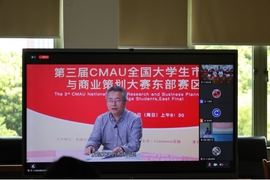 副院长谌飞龙教授宣布。至此第三届CMAU全国大学生市场研究与商业策划大赛东部赛区决赛圆满结束。期待东部赛区的获奖团队能够顺利通过国赛评审,最终相聚于6月16日在中南财经政法大学举行的全国总决赛。