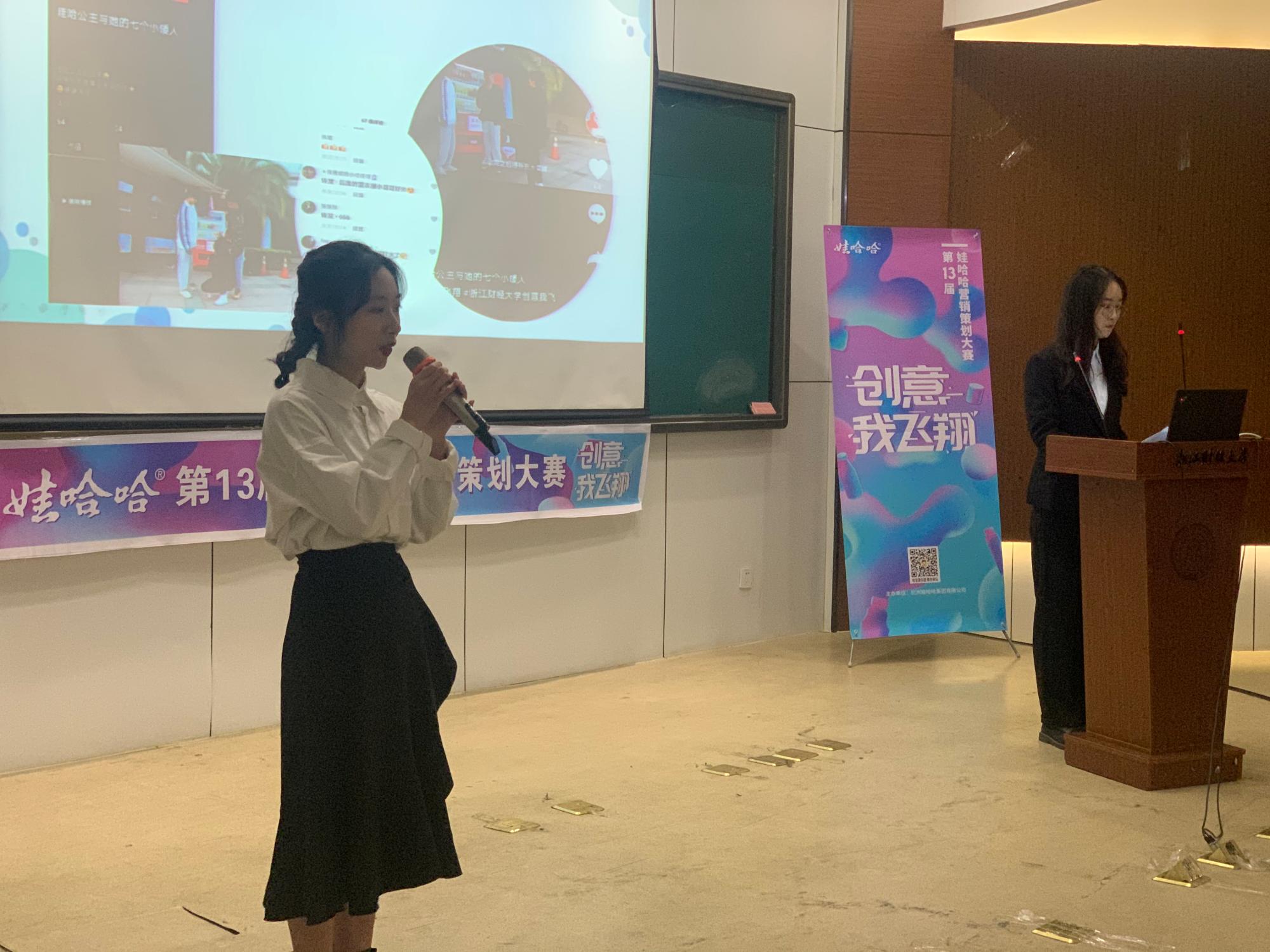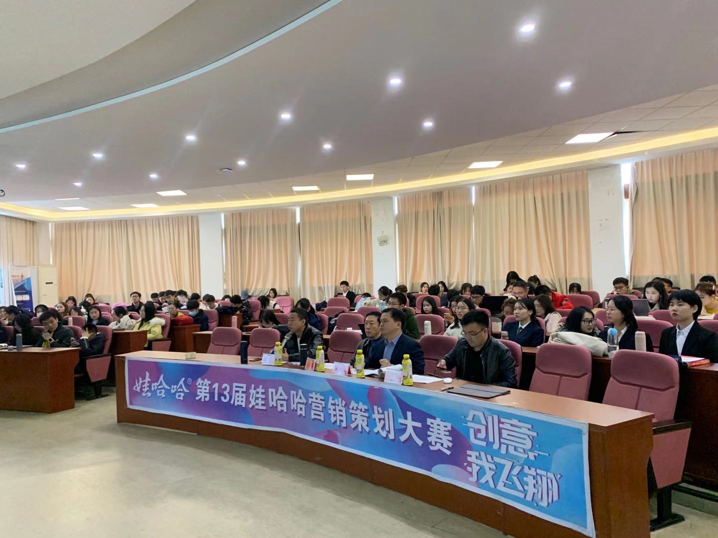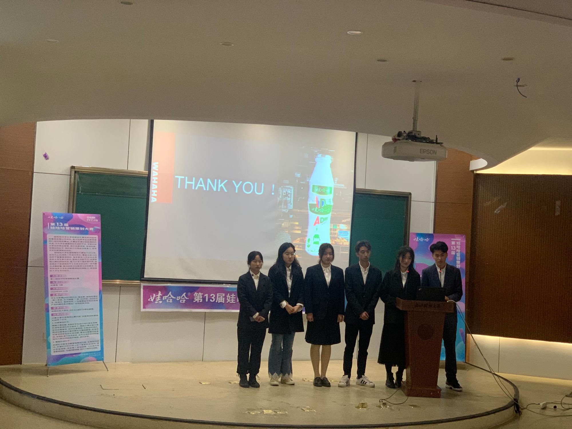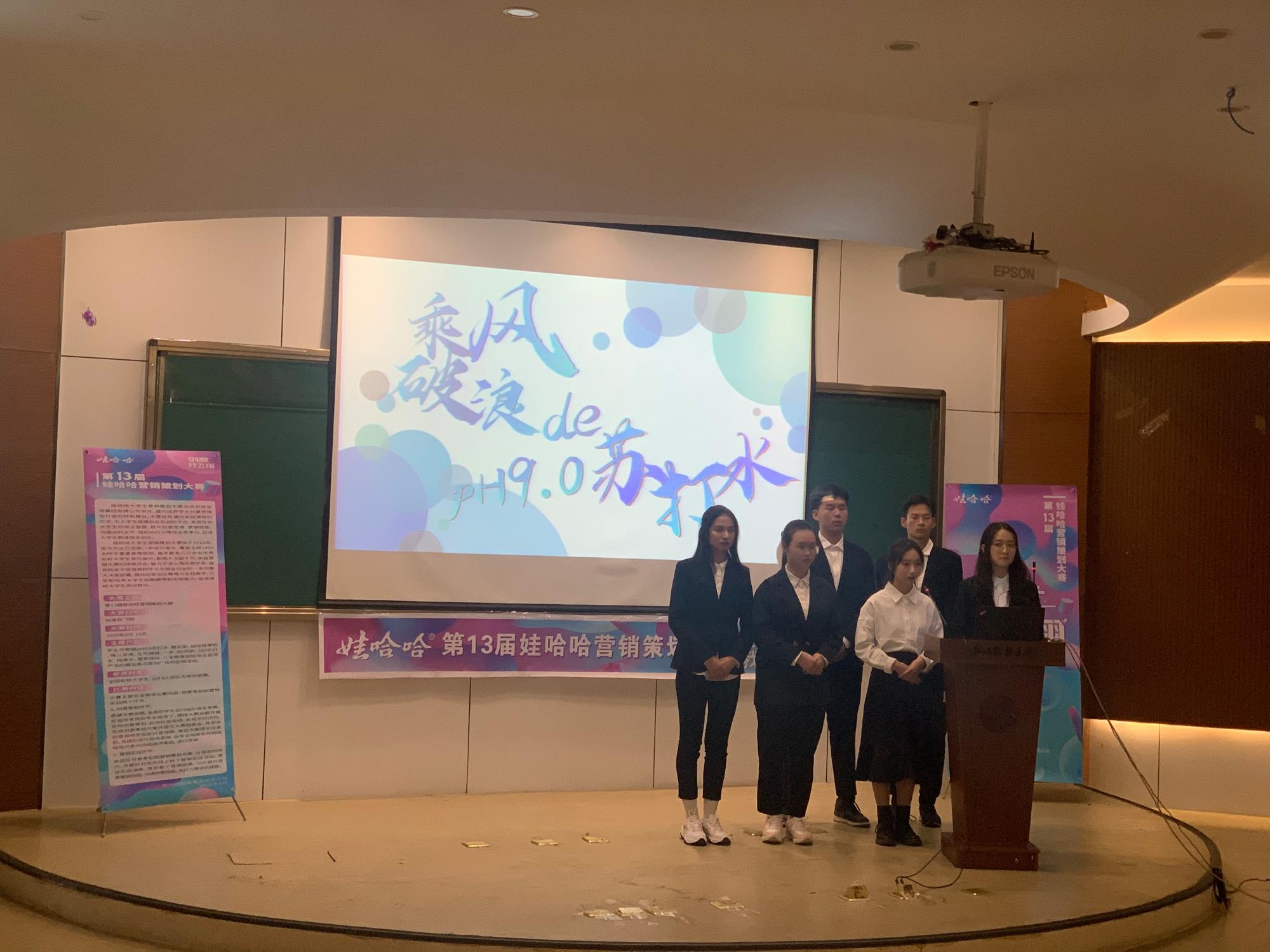 楼217成功举行,本届大学生营销策划大赛圆满落幕。本届娃哈哈大学生营销大赛历时一个半月,共计有61支队伍、350余位学生参加,参赛规模创造了新的记录。市场营销协会邀请了物流管理系赵广华教授、市场营销系郭军灵副教授、高友江博士和娃哈哈集团杭州区域营销总监王伟先生担任评委。