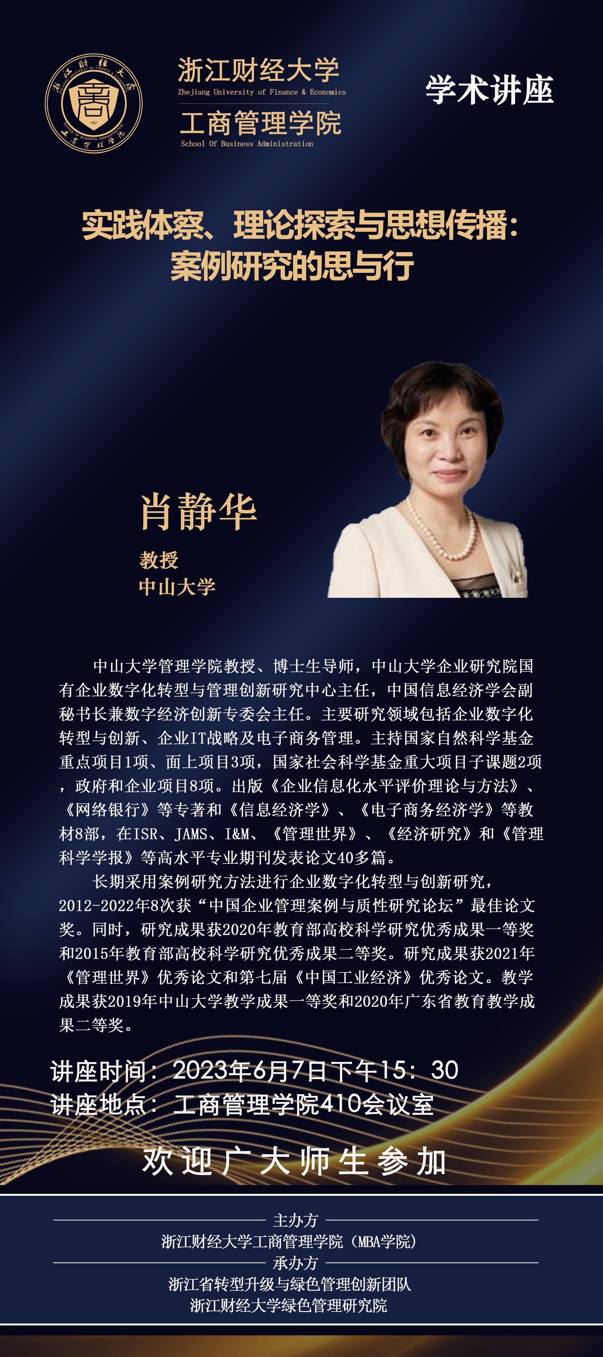 【讲座预告】肖静华教授:实践体察、理论探索与思想传播:案例研究的思与行