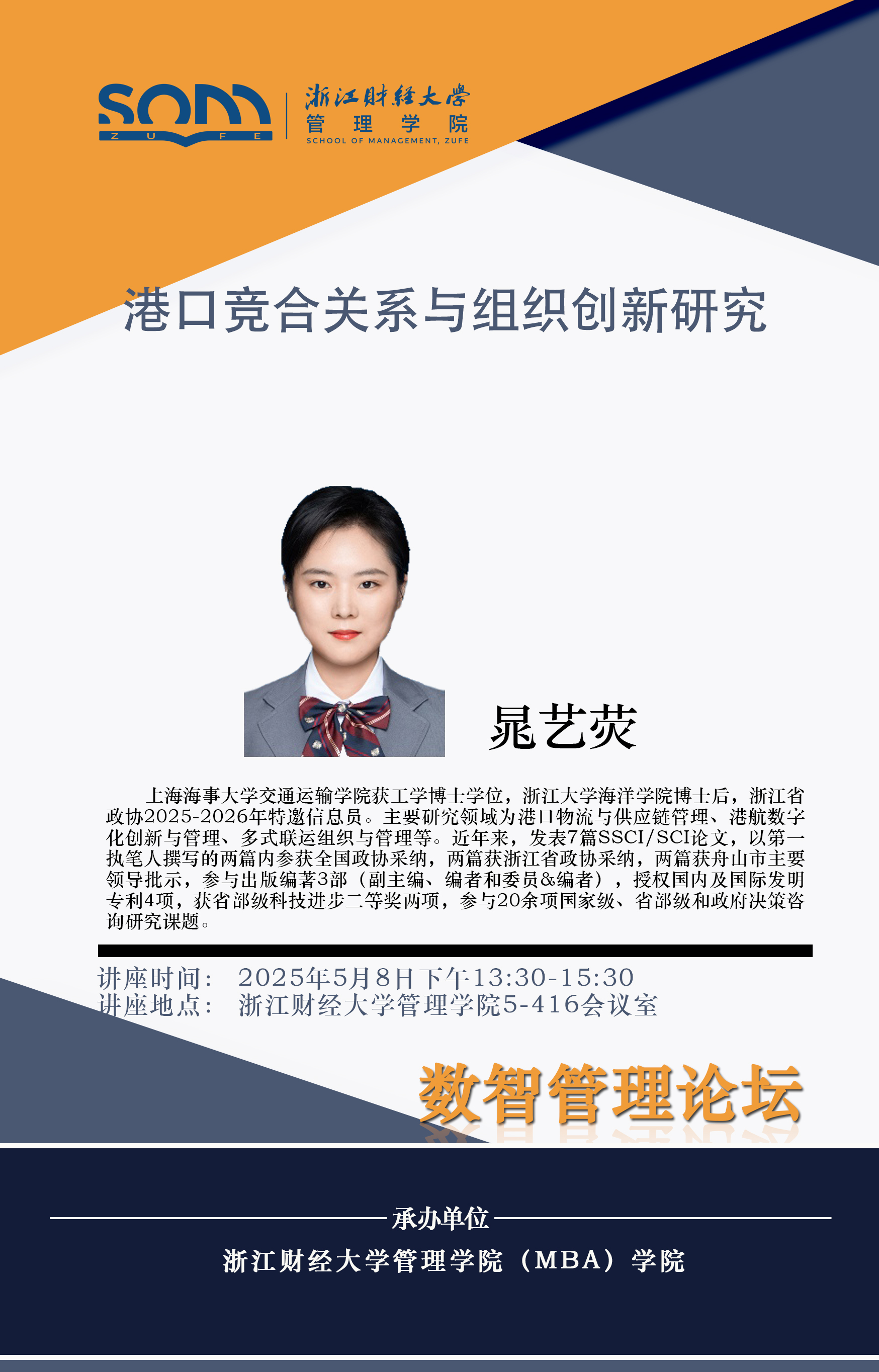 5278论坛 新财经战略系列学术活动2025年第26期【学术报告】晁艺荧:港口竞合关系与组织创新研究