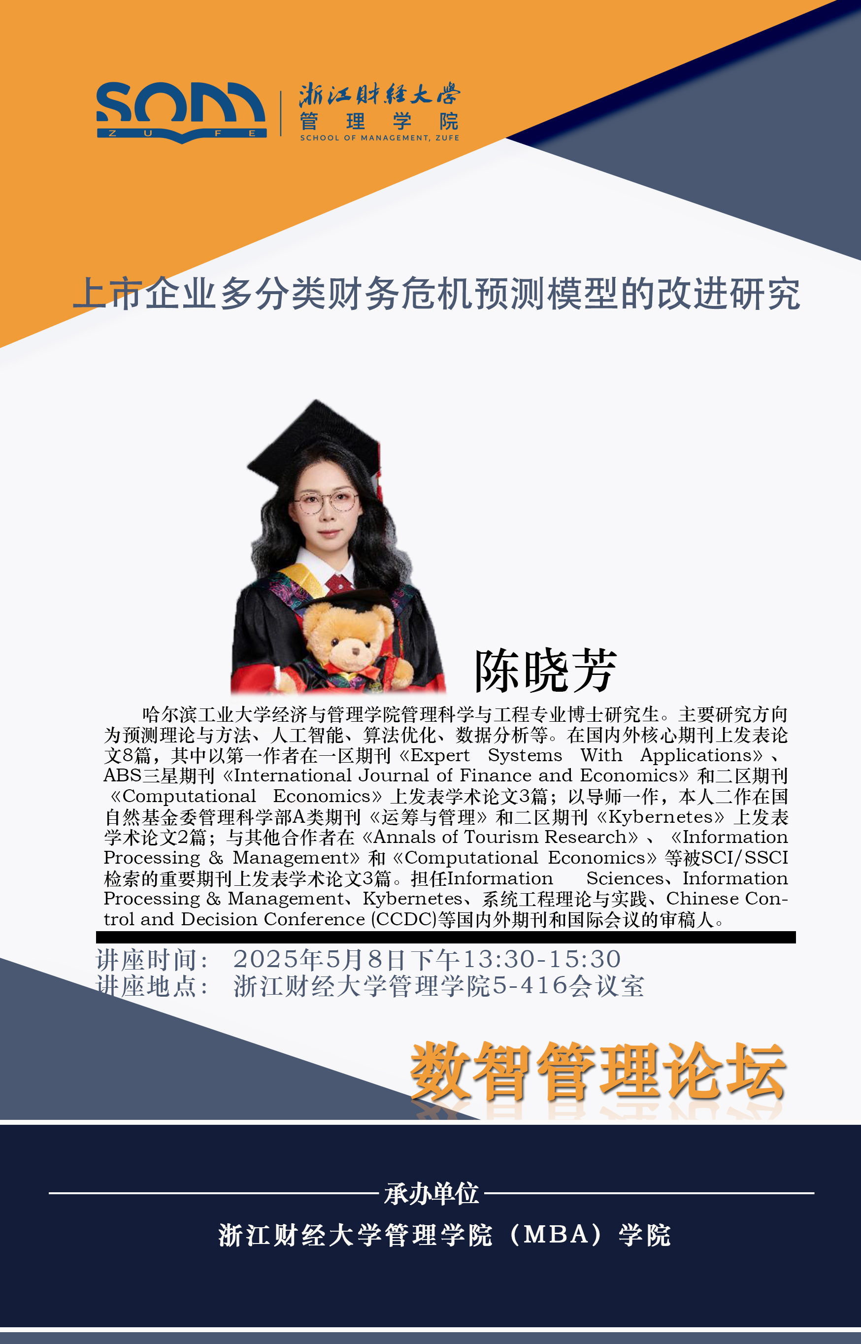 5278论坛 新财经战略系列学术活动2025年第27期【学术报告】陈晓芳:上市企业多分类财务危机预测模型的改进研究