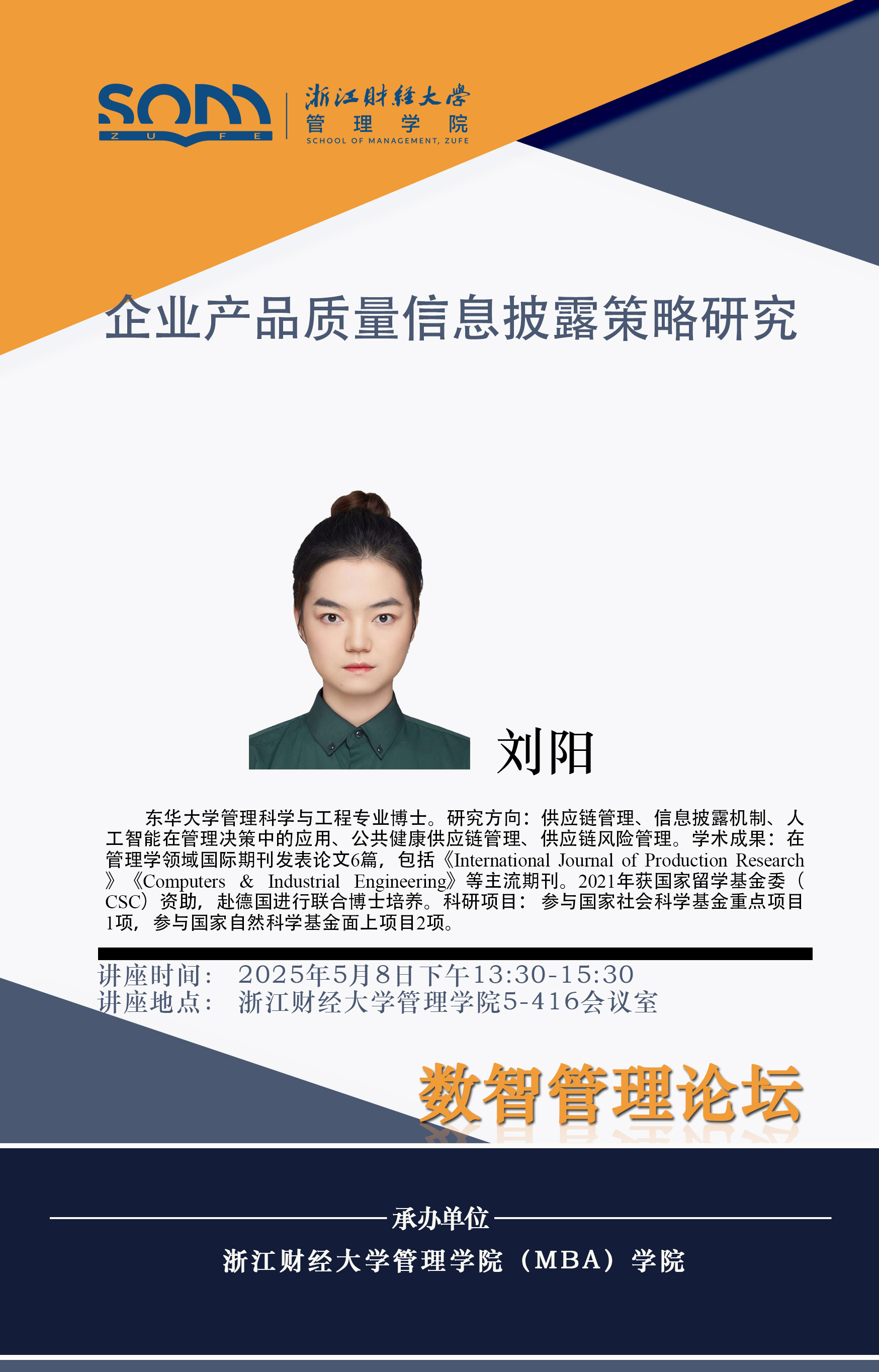 5278论坛 新财经战略系列学术活动2025年第30期【学术报告】刘阳:企业产品质量信息披露策略研究