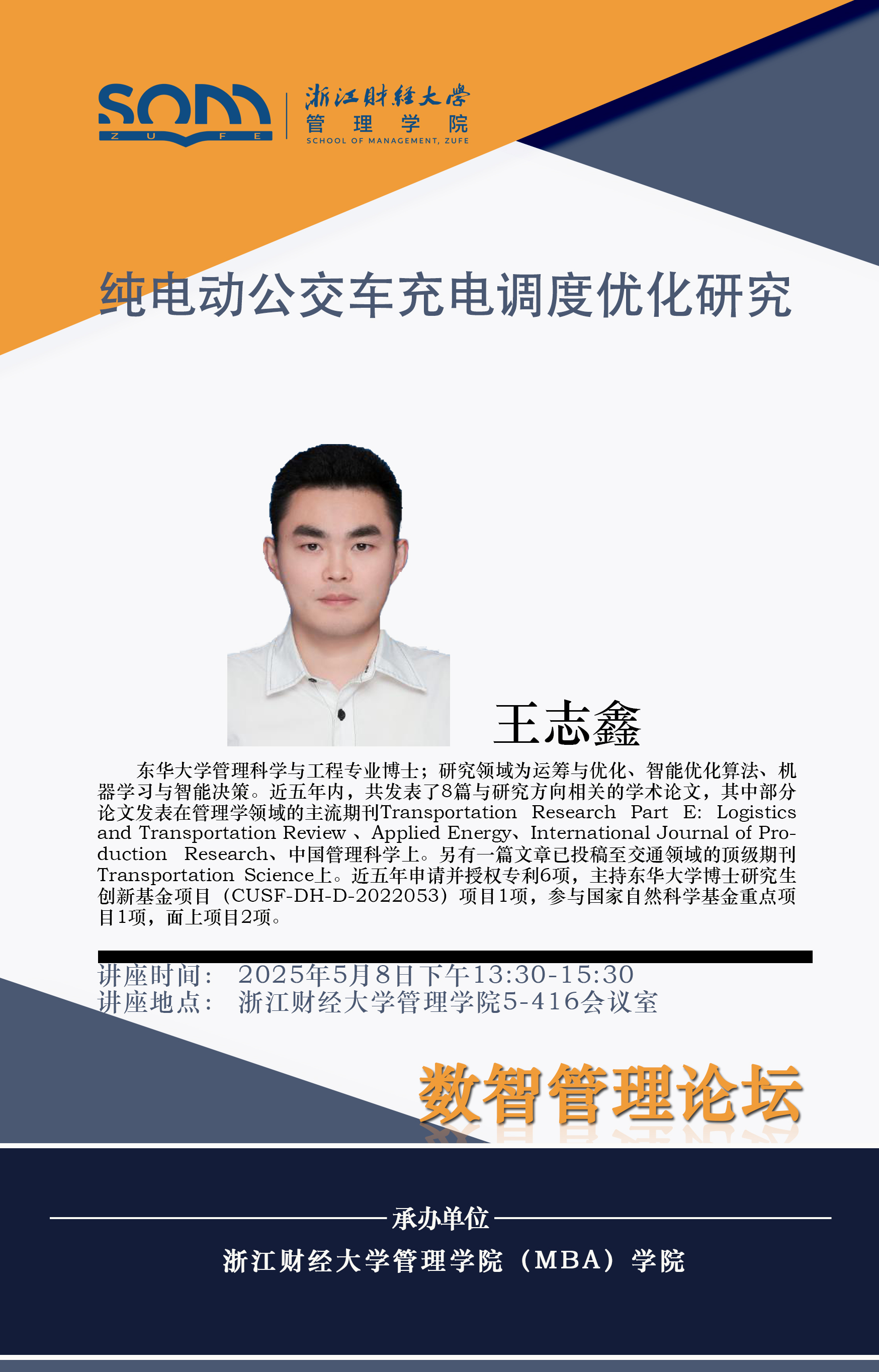 5278论坛 新财经战略系列学术活动2025年第28期【学术报告】王志鑫:纯电动公交车充电调度优化研究