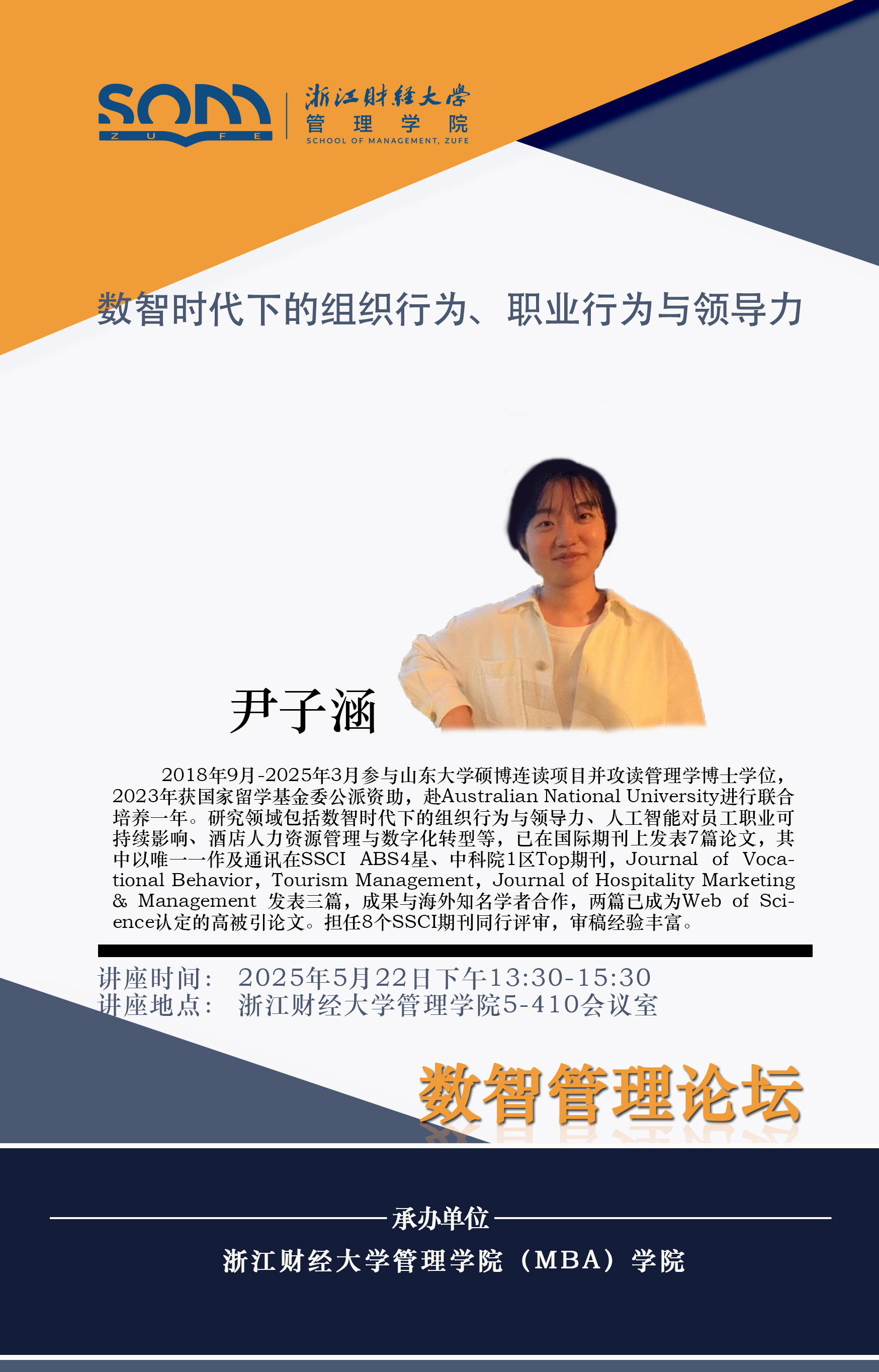 5278论坛 新财经战略系列学术活动2025年第38期【学术报告】尹子涵:数智时代下的组织行为、职业行为与领导力