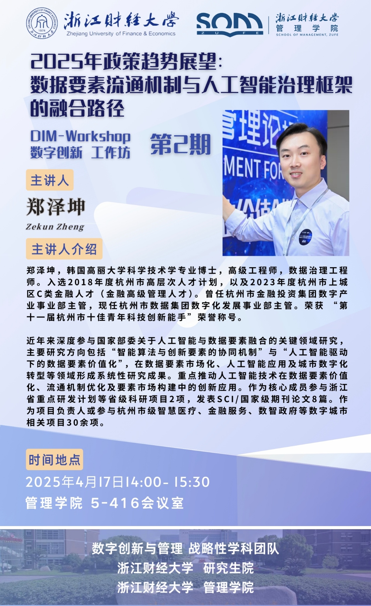 5278论坛 新财经战略系列学术活动2025年第14期【数字创新工作坊】郑泽坤:2025年政策趋势展望:数据要素流通机制与人工智能治理框架的融合路径