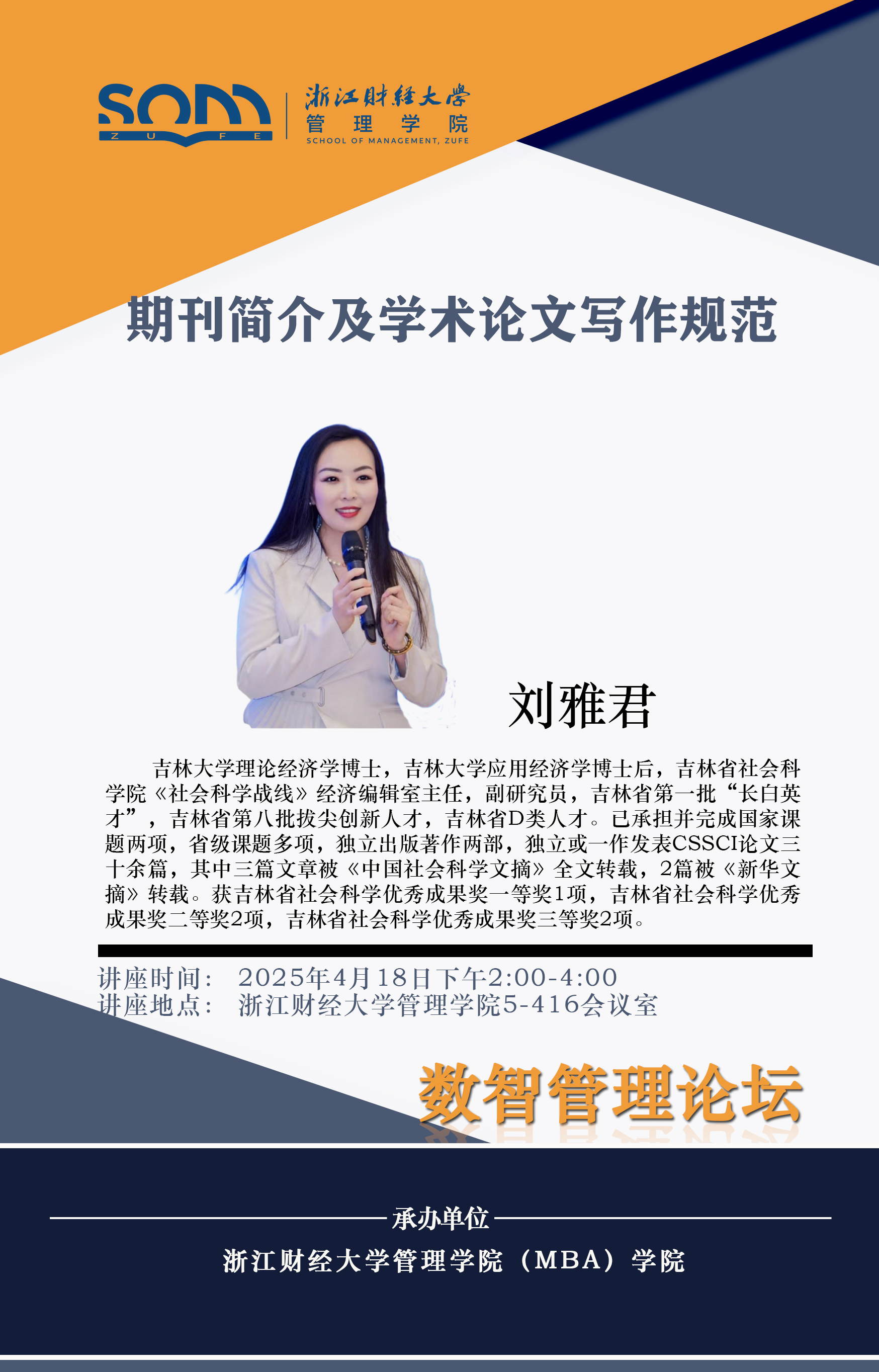5278论坛 新财经战略系列学术活动2025年第15期【学术报告】刘雅君:期刊简介及学术论文写作规范
