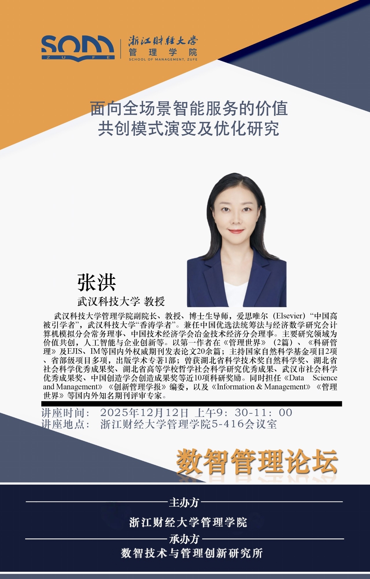 5278论坛 新财经战略系列学术活动2025年第63期【学术讲座】张洪:面向全场景智能服务的价值共创模式演变及优化研究