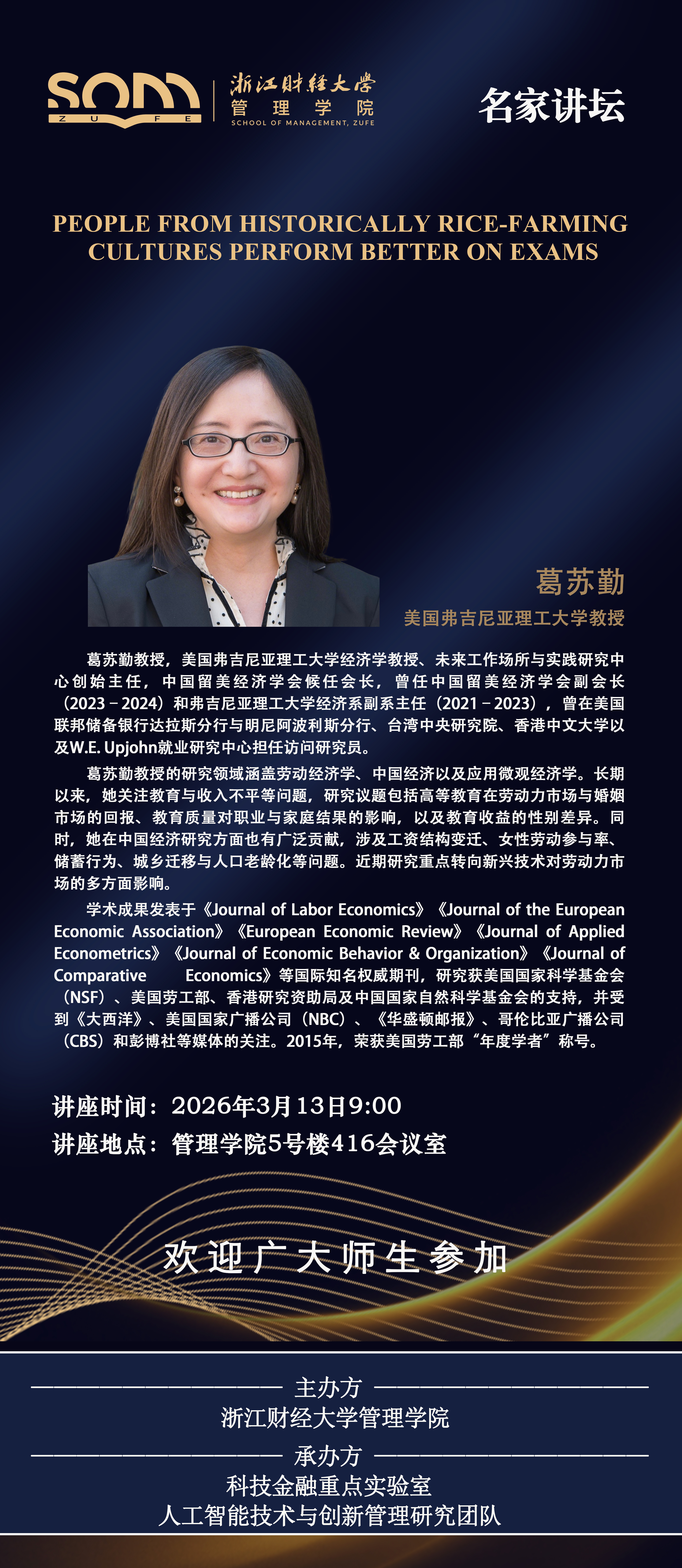 5278论坛 新财经战略系列学术活动2026年第7期【名家讲坛】葛苏勤:People from Historically Rice-Farming Cultures Perform Better on Exams