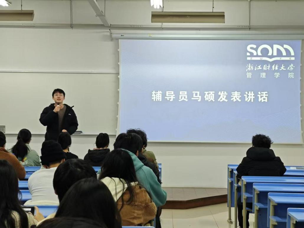 马硕向全体补习班成员提出上课的纪律要求。他指出,助教老师和同学作为同辈能够更好的沟通和交流,能通过互动更好的解决问题,进而提高成绩。希望同学们全程参与,相信助教老师的实力,也相信自己能够成功拿到学分,共同努力推动学院整体的学风氛围愈加浓厚。同时,学院联合显然考研机构为补习同学提供线上的视频资料辅助学习,共同助力同学们完成学业。